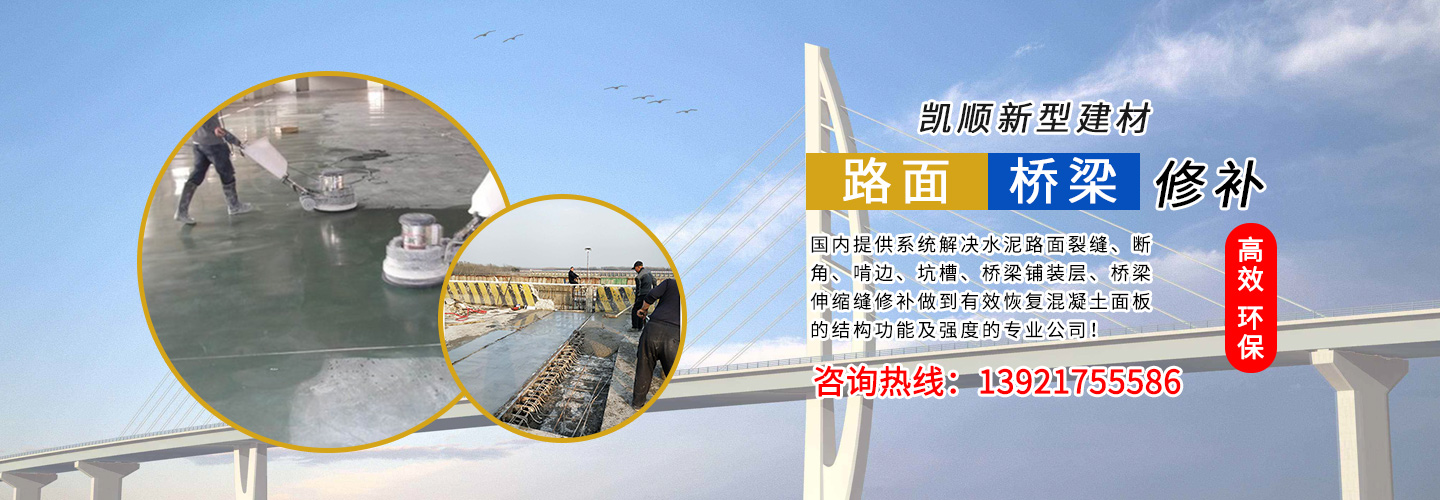 江蘇凱順新型建材有限公司是國內(nèi)提供系統(tǒng)解決水泥路面裂縫、斷角、啃邊、坑槽、橋梁鋪裝層、橋梁伸縮縫修補做到有效恢復混凝土面板的結(jié)構功能及強度的專業(yè)公司!為市政工程、高速、國道、省道、縣鄉(xiāng)道路的改造及大修、中修等大型工程提供了快速、高效、環(huán)保、經(jīng)濟系統(tǒng)方案和技術支持!